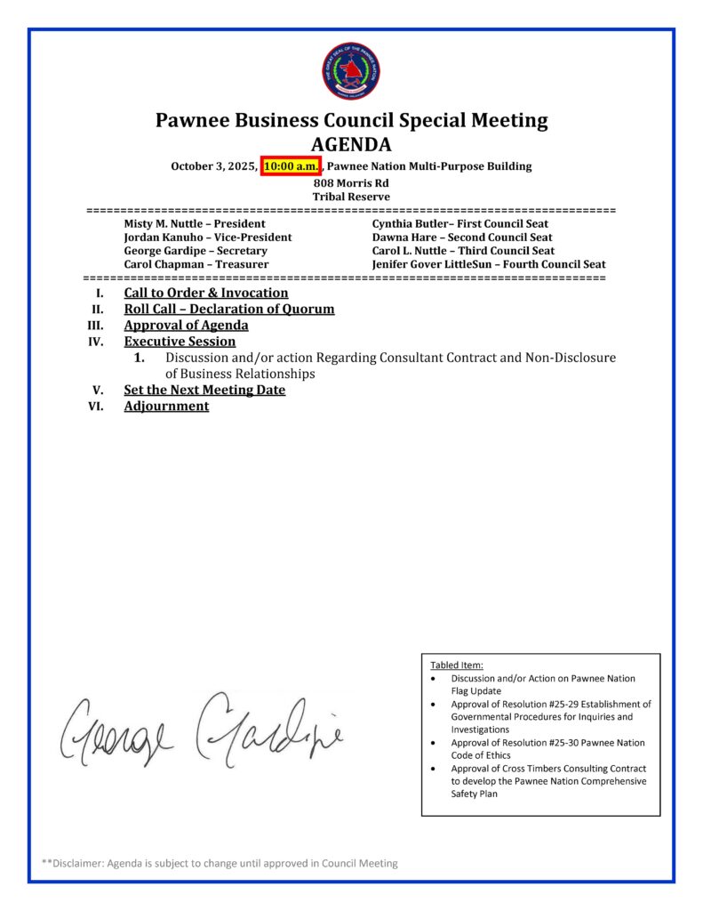 Nawa Akitaru, The Pawnee Nation would like to address the Federal Government Shutdown — Pawnee Nation Operations Plan The Federal government entered a shutdown on October 1, 2025, following a lapse in appropriations. Pawnee Nation remains committed to ensuring essential services for our people continue without disruption. This memorandum provides an update on how Pawnee…