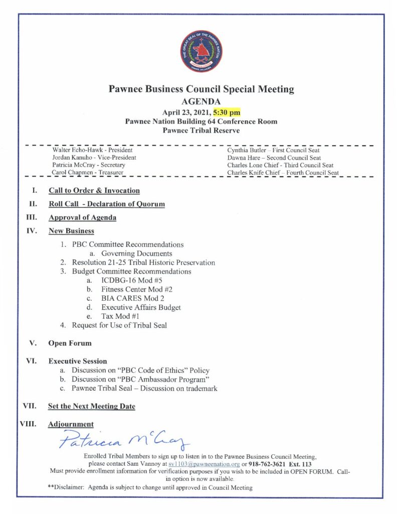 Pawnee Nation Liquor Control Commission Regular Meeting