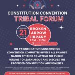 Nawa Akiraru: Did You Know? The Pawnee Nation Constitution Convention Delegates are hosting three (3) public forums to discuss proposed amendments to our Nation’s Constitution. Upcoming Forum Dates • Saturday, January 17, 2026 | 1:00 PM – 3:00 PM Pawnee Nation Multi-Purpose Building, 808 Morris Rd., Pawnee, OK • Saturday, February 14, 2026 | 1:00…