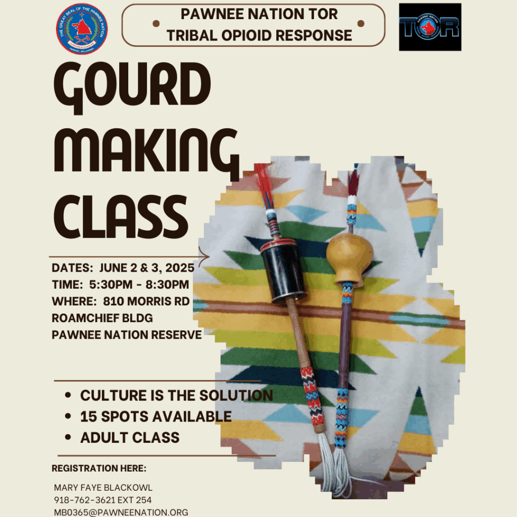 Registration here: Mary Faye Blackowl, mb0365@pawneenation.org or 918-762-3621 ext. 254