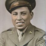 During World War II, Pawnees served in both the Pacific and European theaters. Sgt. Alex Mathews was captured in the Philippines as a member of the New Mexico National Guard and survived Cabanatuan Prison Camp, Japanese ‘Hell Ships’, and slave labor in Japan. Staff Sergeant Frank Davis participated in the invasion of Sicily, Salerno, and Anzio before being wounded in action. Levi Horsechief jumped into Sicily, Anzio, Normandy, and Holland with the 82nd Airborne, Sergeant Grant Gover was killed in action in the Rhineland, Technician 5th Grade Henry Stoneroad fought in the New Guinea and Luzon, just to name a few. Many of the Pawnees who served also used their once-forbidden language as Code Talkers.