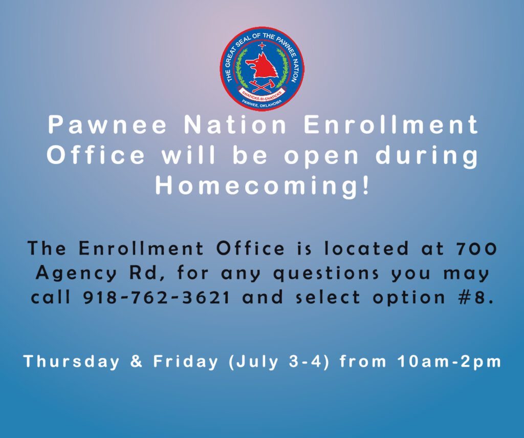 Pawnee Nation Enrollment Office will be open during Homecoming!
