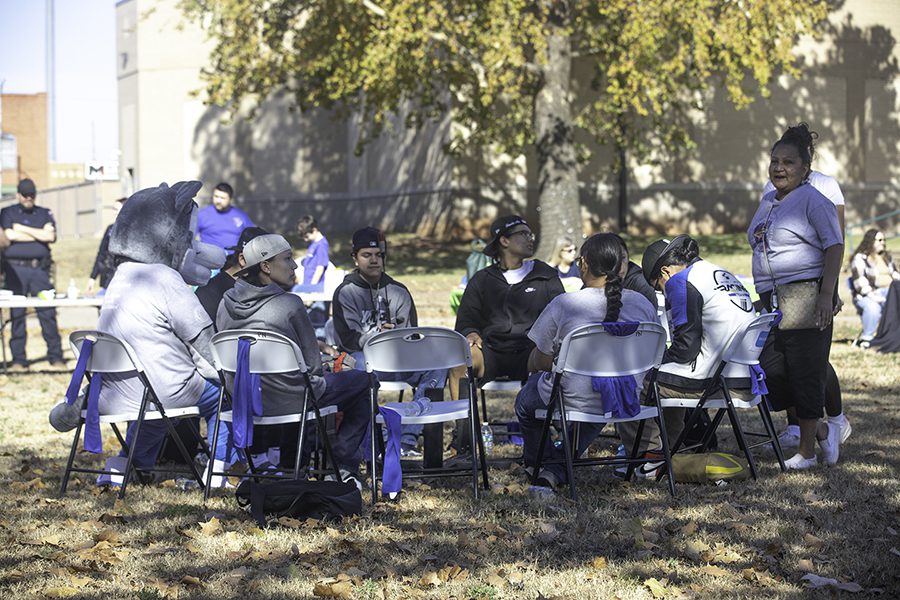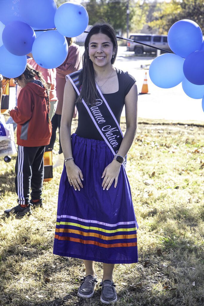 Inside the costume is the Pawnee Nation Tax Commission Administrative Assistant, Louise Beard. Beard volunteered to wear the “Skidi” costume for the introduction and fair.